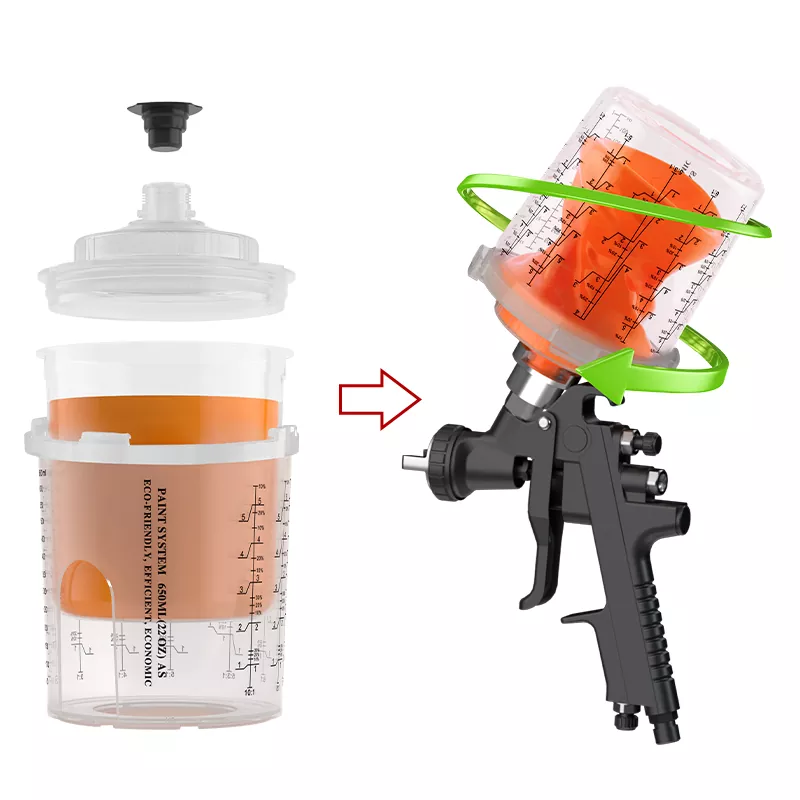 透明なカップのデザインにより、残りの塗料を簡単に観察できます。使い捨てスプレーカップにより、スプレーガンが塗料を漏らすことなく360度スプレーできるようになります。木製のドア、キャビネット、頑丈な木製の家具にPU/NC塗料が散布するのに適しています。