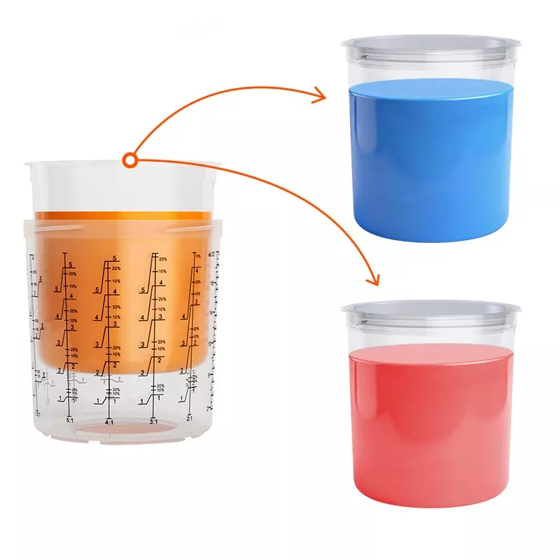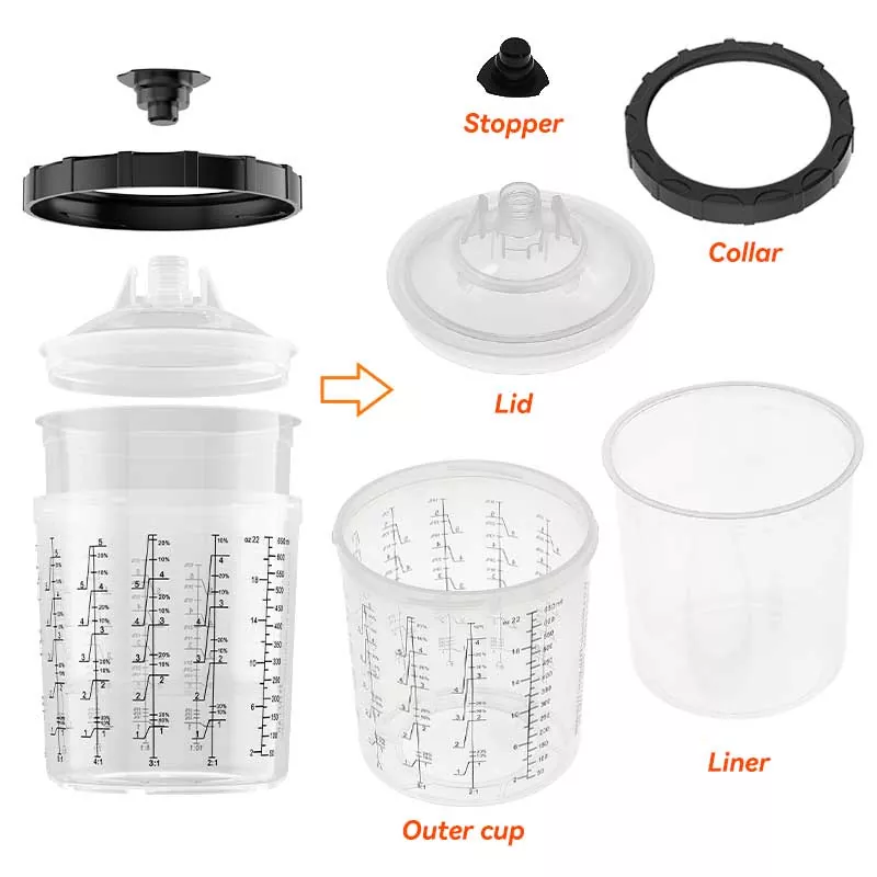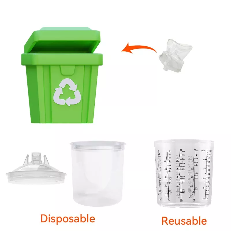 使い捨て塗料カップ システムは、混合、濾過、スプレー、保管の機能を 1 つのユニットに組み合わせています。これにより、ペイント前の準備が簡素化されるだけでなく、混合カップや紙製ロートのコストも節約できるため、準備時間を節約し、スプレー効率を向上させるのに最適な選択肢となります。