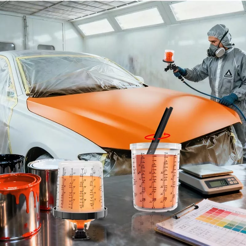 従来のスプレーカップでは、塗装前に複雑で面倒な準備が必要です。混合カップで塗料を混合し、紙製ロートで塗料をろ過し、使用後にカップを洗浄し、色を変更するときに塗料を別の容器に一時的に保管する必要があります。