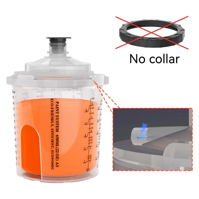 カップと蓋の間に緊密な接続を形成する襟は、使い捨てスプレーカップシステムの重要なコンポーネントでした。忙しい絵画セッション中、画家はしばしば襟を失い、損傷し、使い捨てスプレーカップが適切に機能するのを防ぎ、大きな課題を引き起こします。